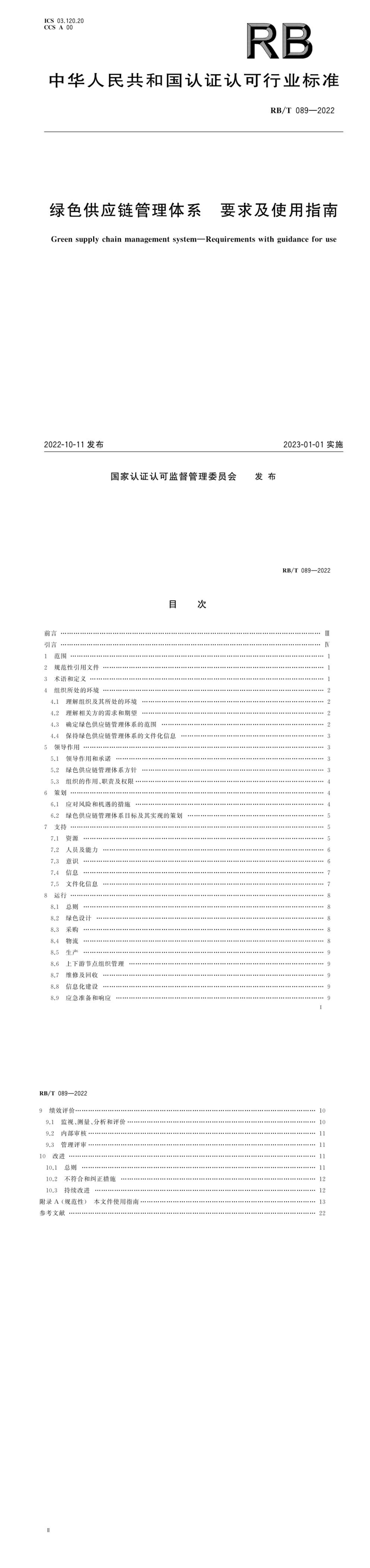 RBT 089-2022 绿色供应链管理体系 要求及使用指南