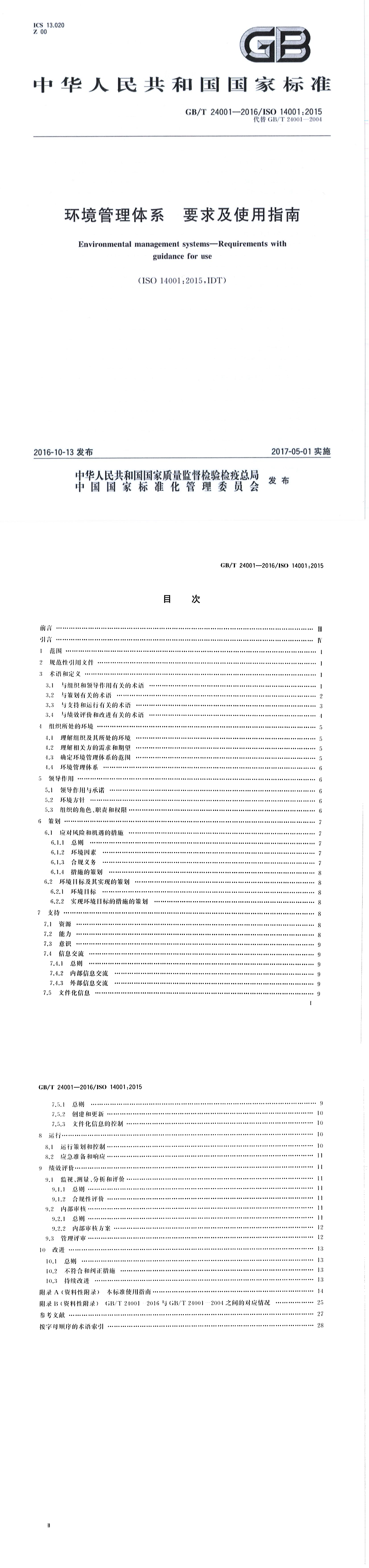 GBT 24001-2016 环境管理体系 要求及使用指南