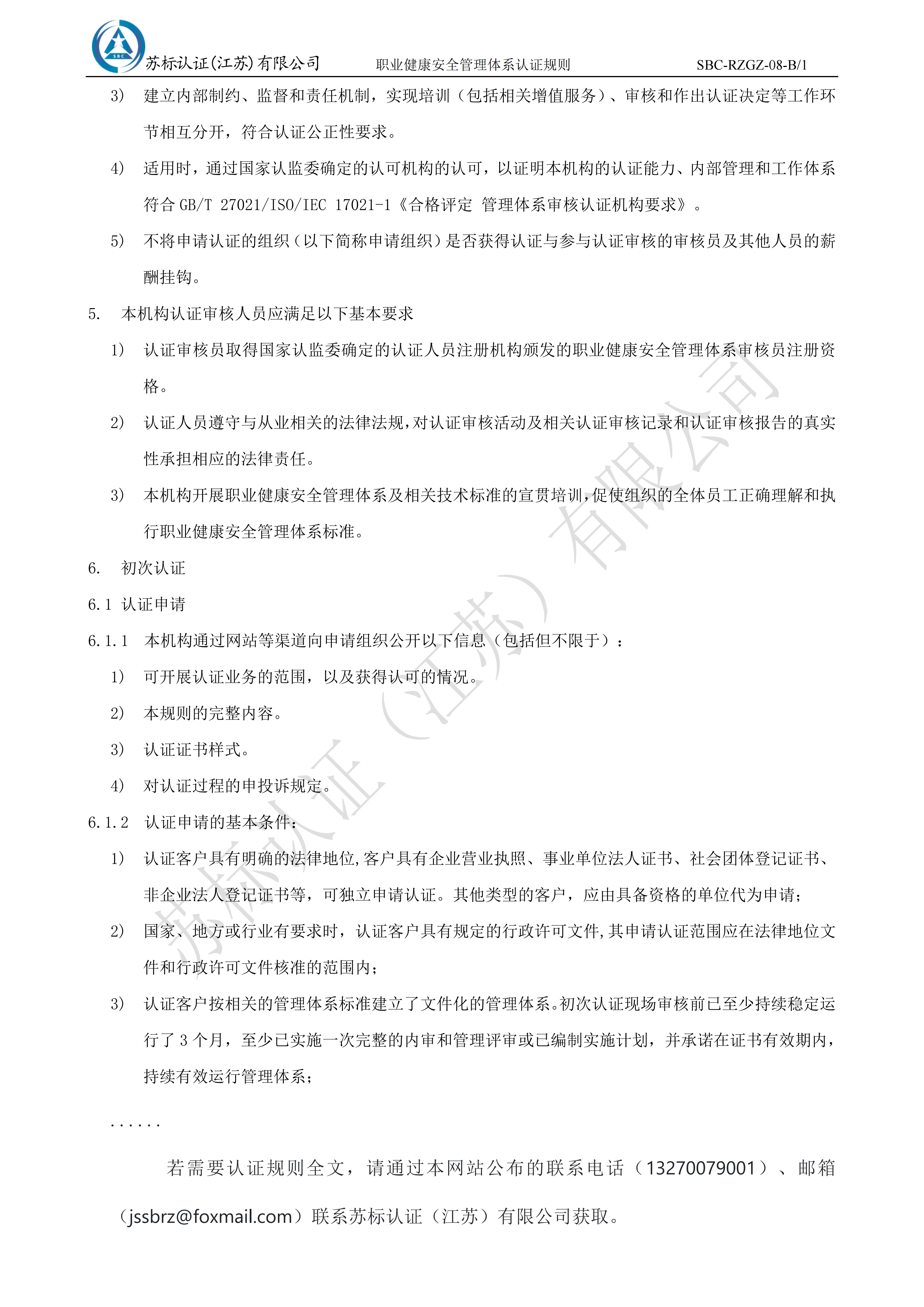 若需要认证规则全文,请通过本网站(http://www.jssbrz.com)公布的联系电话(13270079001)、邮箱(jssbrz@foxmail.com)联系本机构获取。 环境管理体系认证规则 供应链安全管理体系认证规则