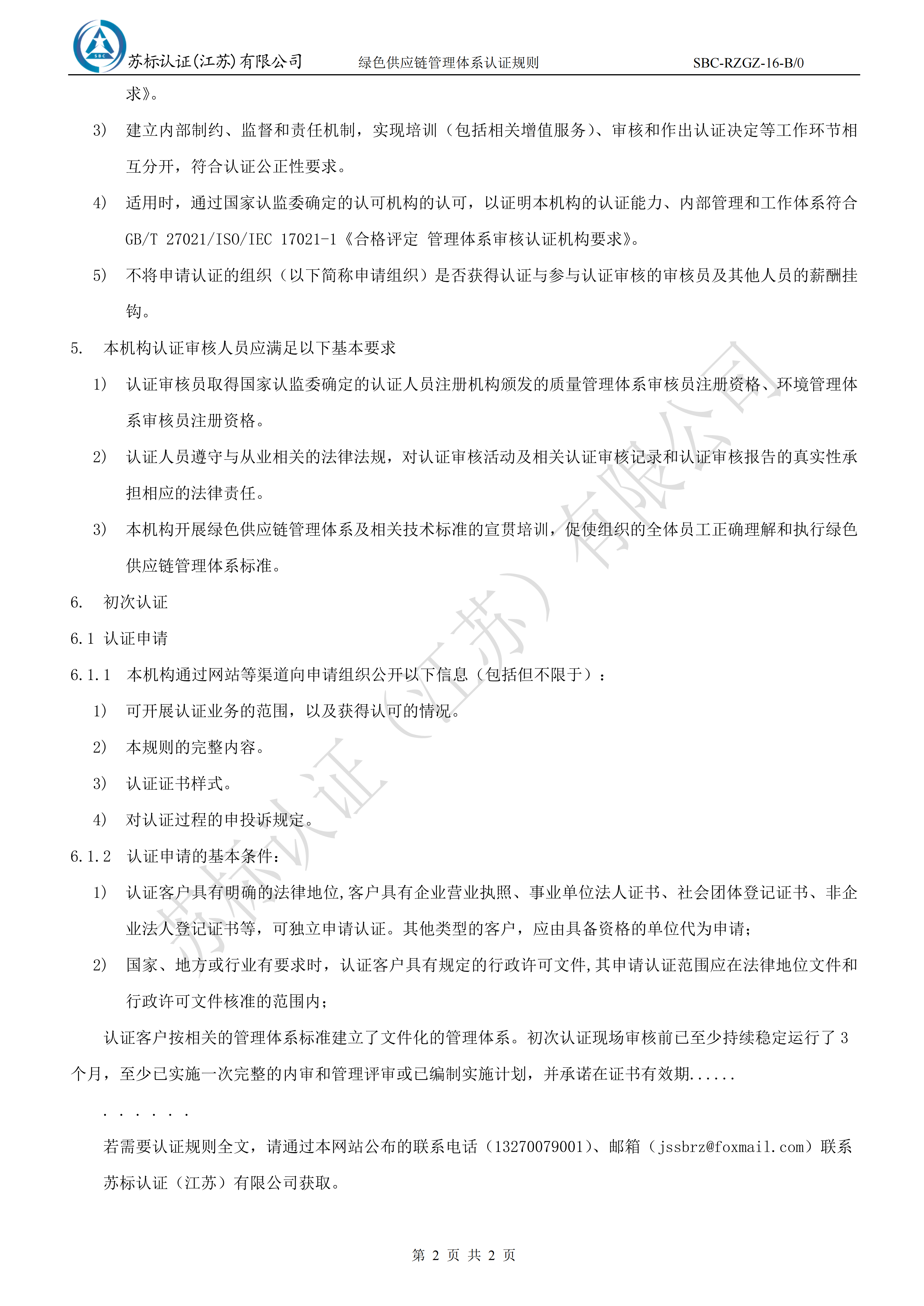 若需要认证规则全文,请通过本网站(http://www.jssbrz.com)公布的联系电话(13270079001)、邮箱(jssbrz@foxmail.com)联系本机构获取。 供应链安全管理体系认证规则 企业诚信管理体系认证规则
