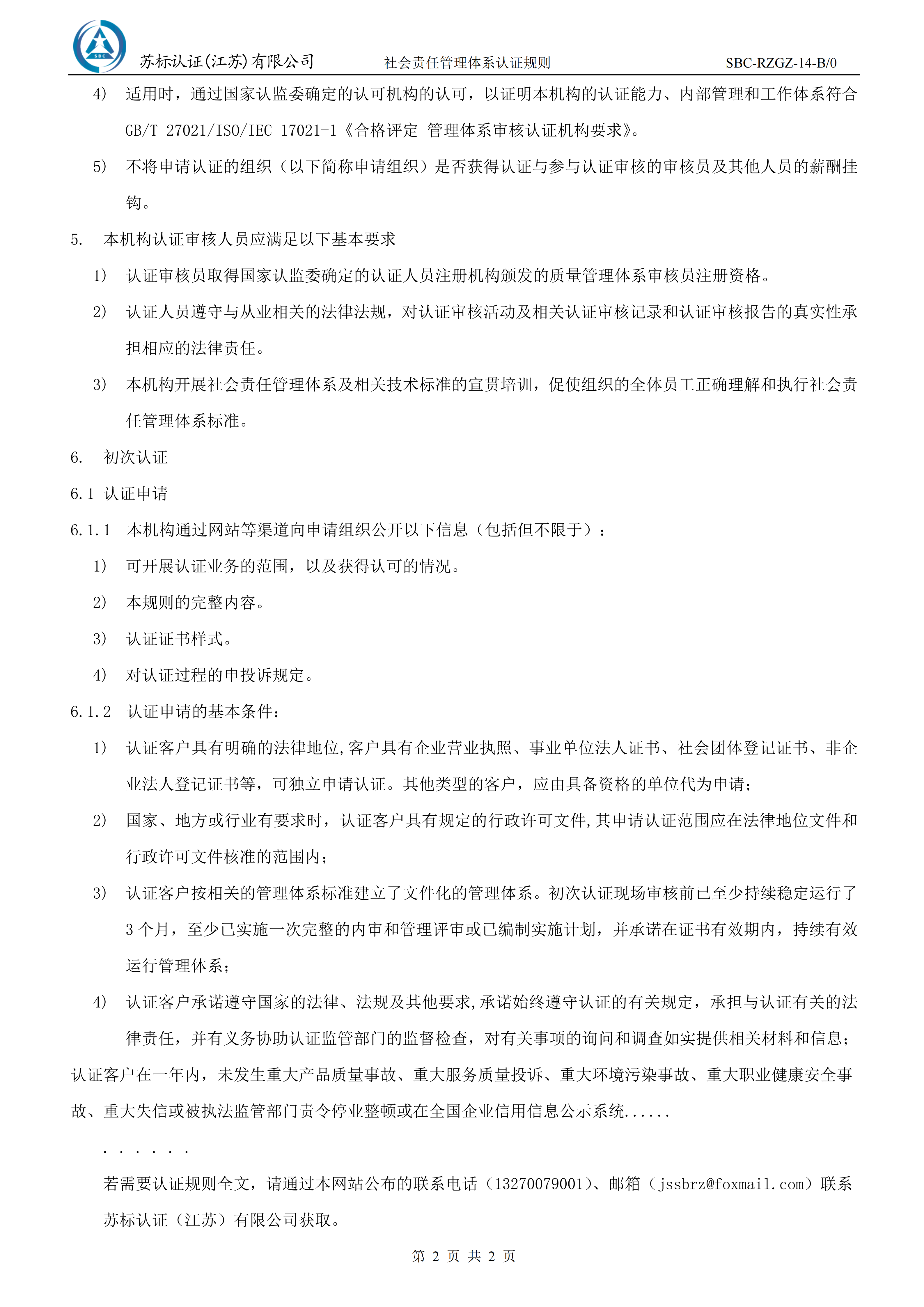 若需要认证规则全文,请通过本网站(http://www.jssbrz.com)公布的联系电话(13270079001)、邮箱(jssbrz@foxmail.com)联系本机构获取。 企业诚信管理体系认证规则 返回列表