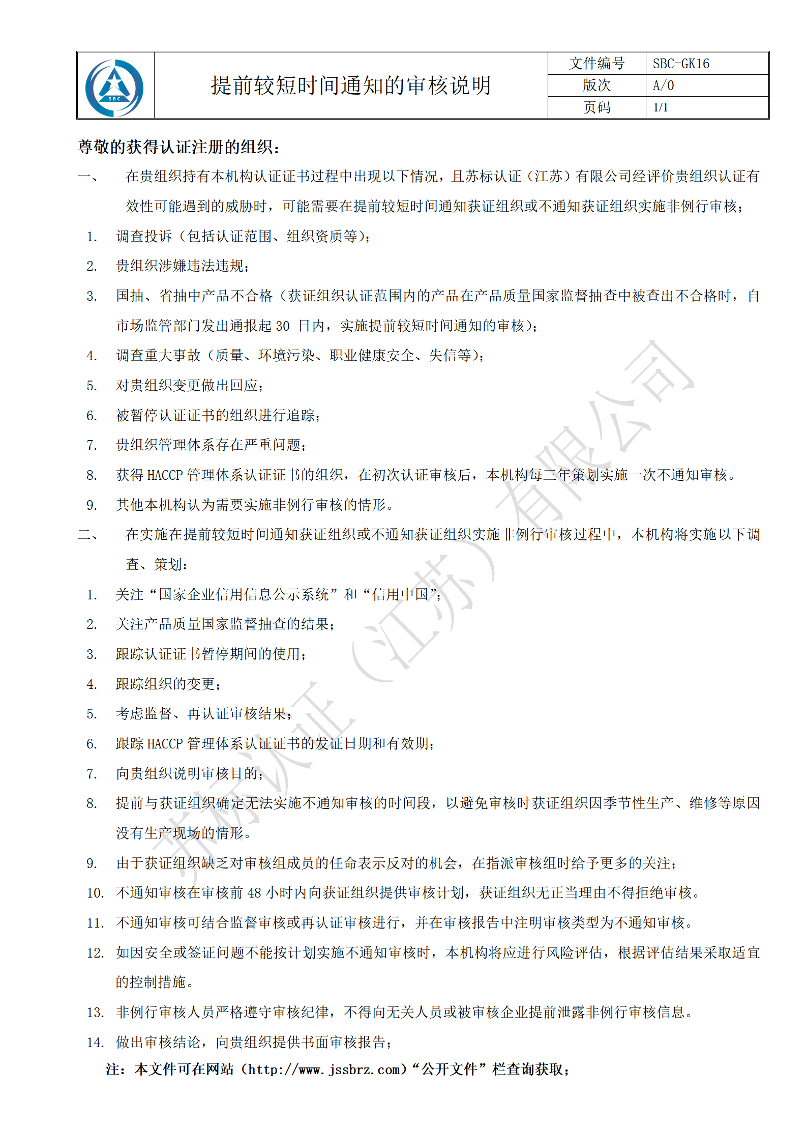 提前较短时间通知的审核说明