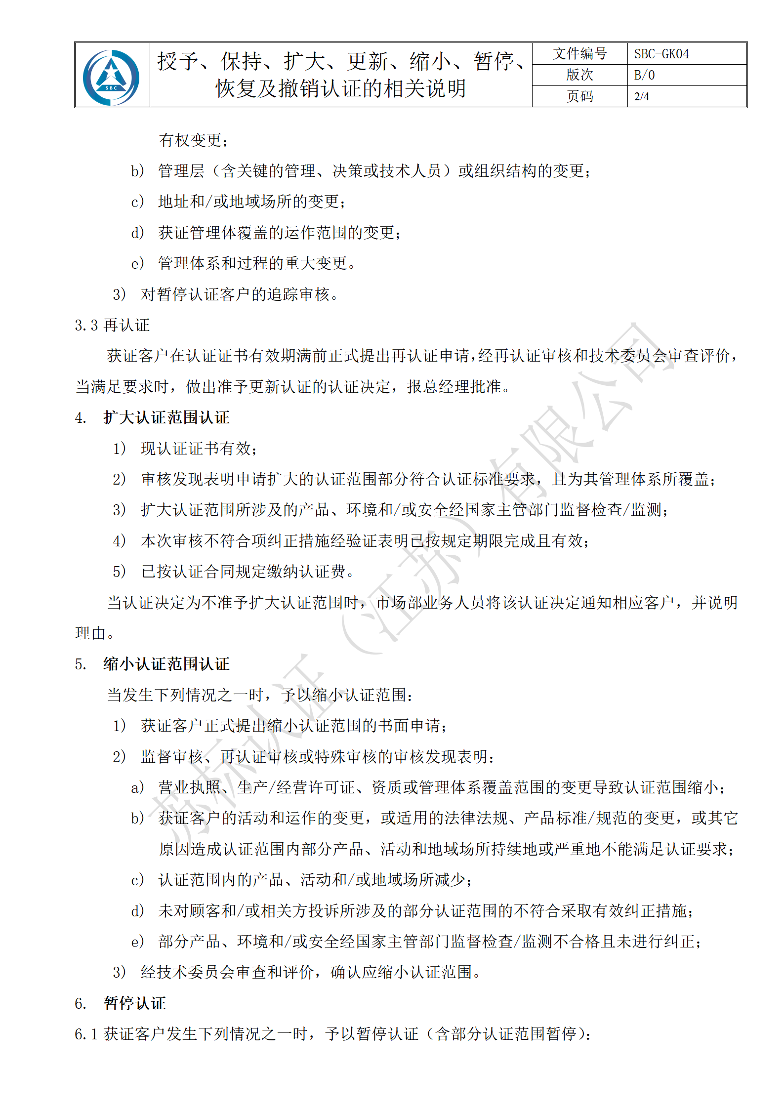 授予、保持、扩大、更新、缩小、暂停、恢复及撤销认证的相关说明