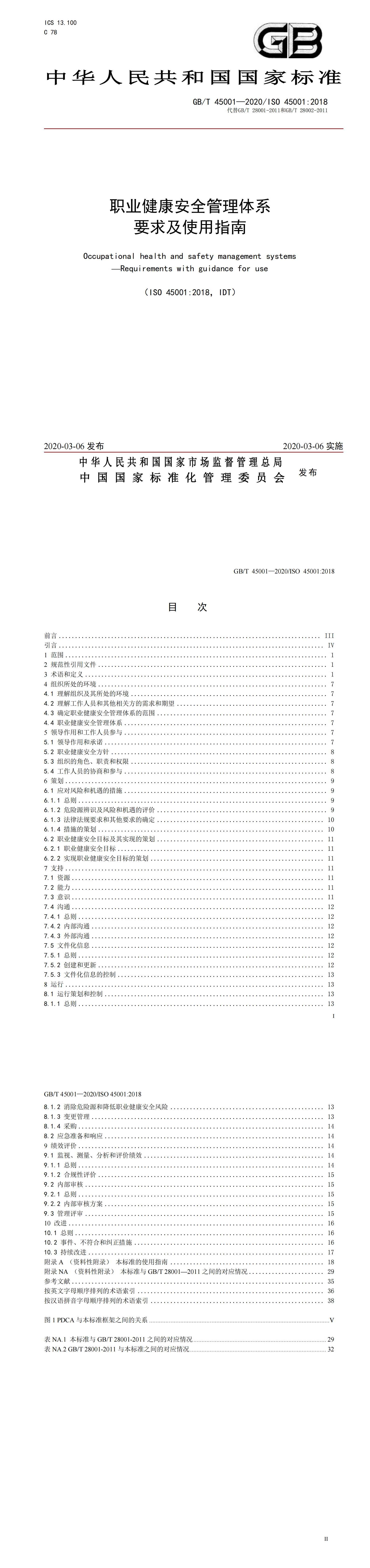 GBT 45001-2020 职业健康安全管理体系 要求及使用指南